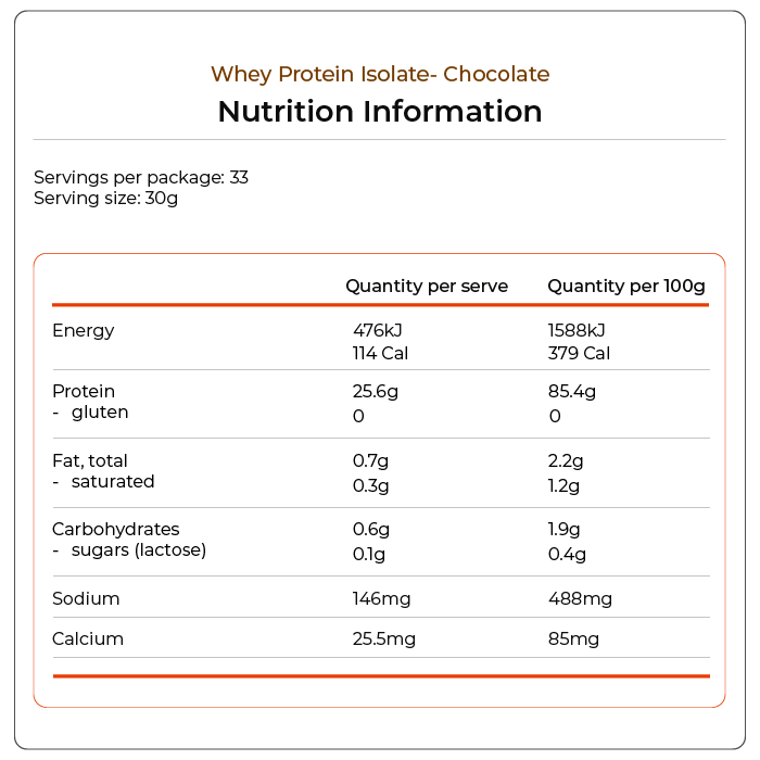 Our Whey Protein Isolate comes in three flavours: Rich Chocolate, Creamy Vanilla and Unflavoured. The flavours are balanced and delicious, without being too sickly sweet. The unflavoured option is neutral and super versatile. The powders are non-gritty and mix easily into shakes or can also be added to recipes for an extra kick of protein.